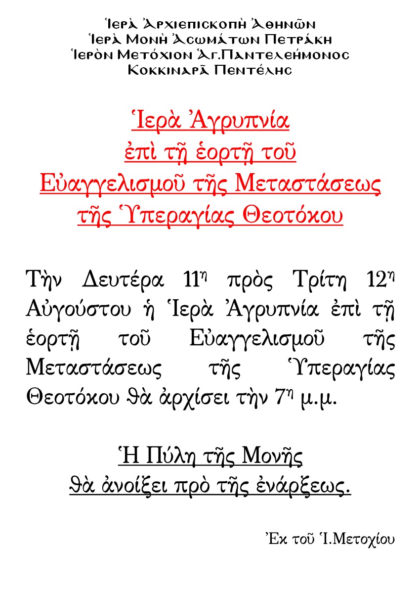 μετὰ τοῦ καθ’ ἡμᾶς Ἱ.Μετοχίου εἰς τὴν ἑξῆς διεύθυνσιν: